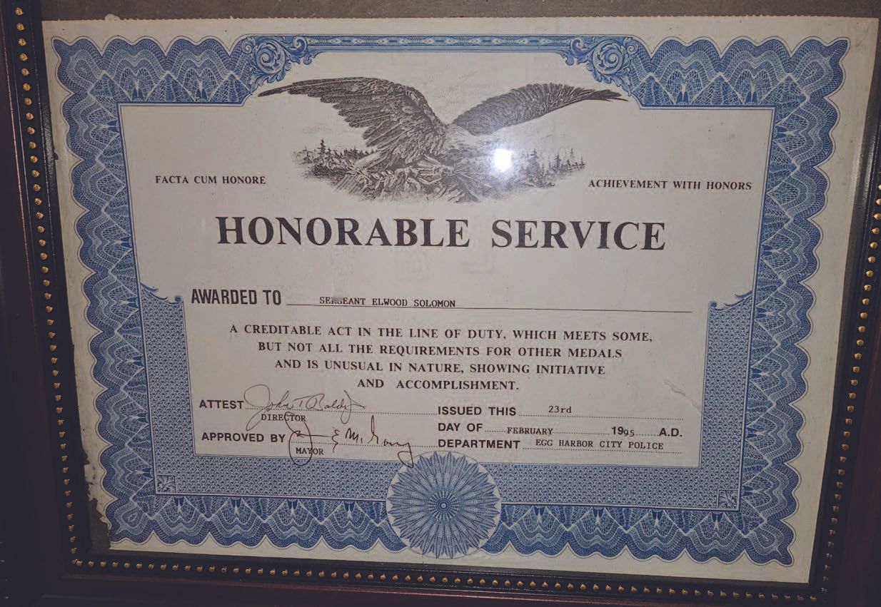So we honor and remember you Sgt. Elwood Solomon. Thank you for the decades of service and being an exemplary officer of the law. In your memory we hope to honor you by showing your son, he is also not forgotten and we will do our best to be a helping and encouraging force throughout his life.