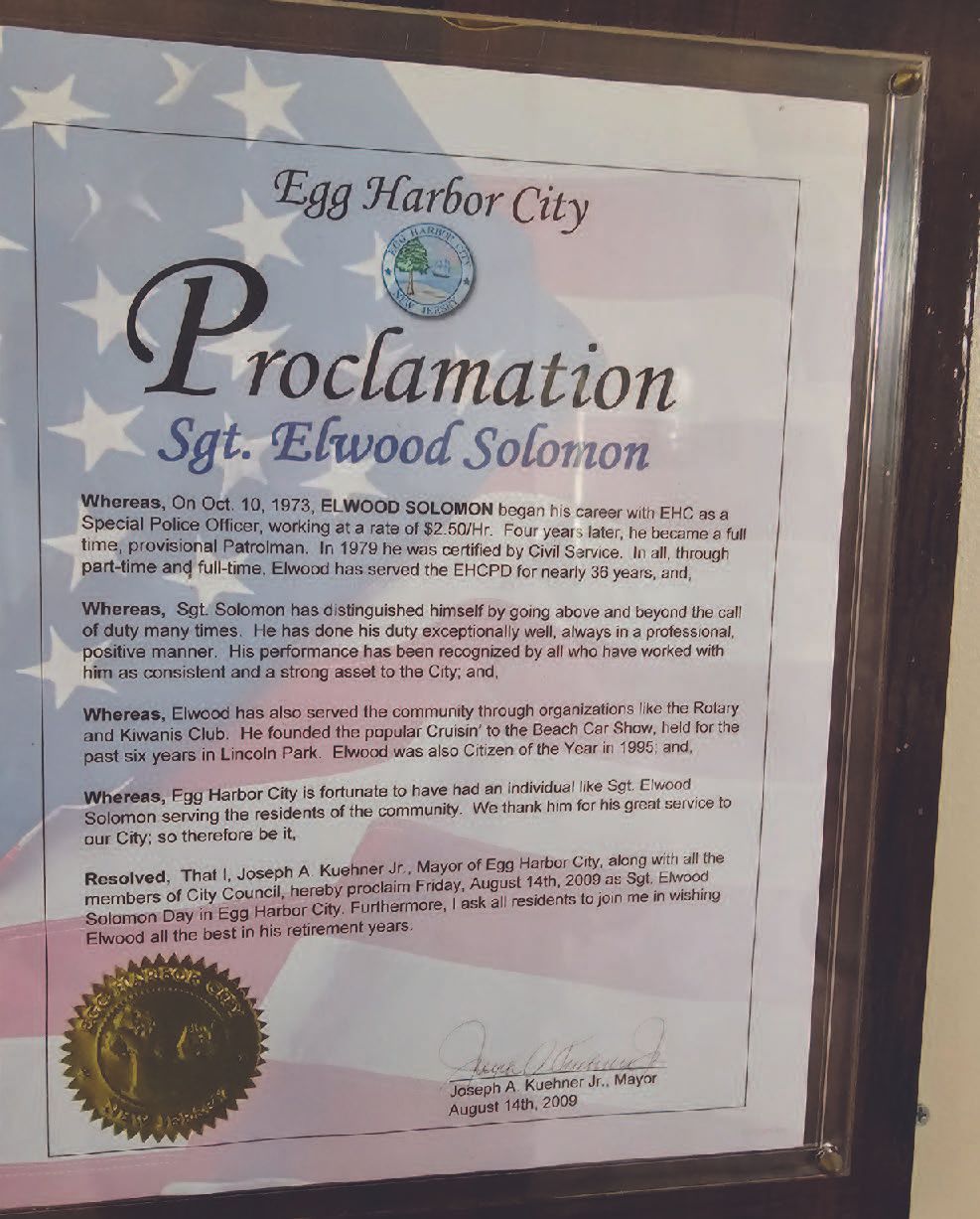 Sgt. Elwood Solomon was truly a great example of a quality law enforcement officer. Solomon served his community for 36 years receiving many awards and honors for going above and beyond the call of duty. Including when off duty he saw a boy fall through the ice at the lake. Immediately and with total disregard for his own safety, Solomon dove into the frozen lake and rescued the boy from drowning. He received the “merit award” from the policeman’s benevolent association for his heroic act. A newspaper article about
